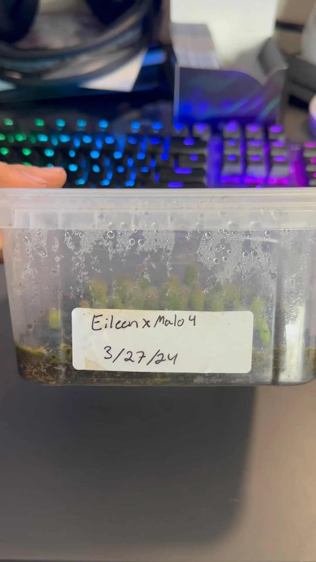 Within a month this fella was extremely overwatered, etiolating heavily, and overall I was discouraged. Admittedly, I got this for its “effects”. I couldn’t help but want to get it back to its glory. Hours and hours in forums, watching every video I could find on YouTube, I slowly fixed my set up where I could. Fixed my soil mixture, Discovered the rabbit hole of lighting, A heat mat for promoting root growth, and what the hell a NPK meant.